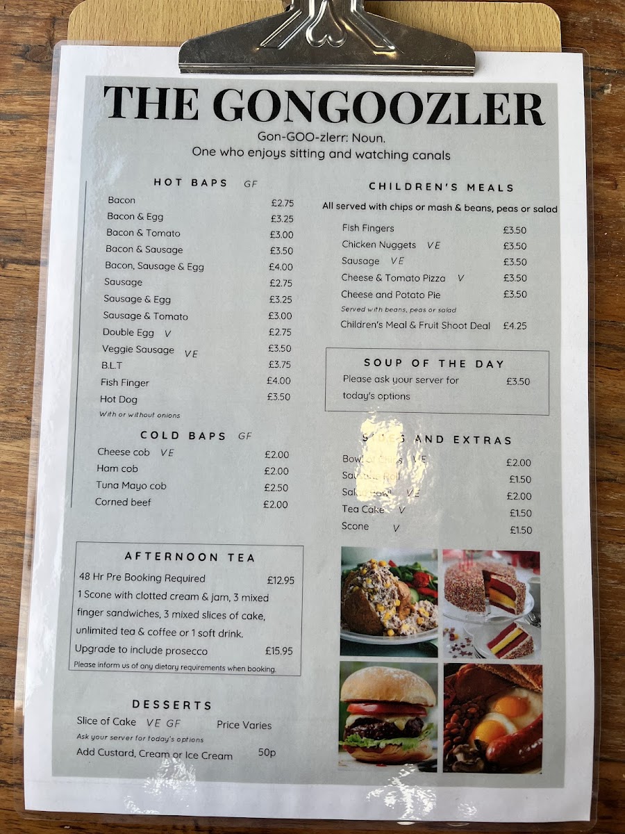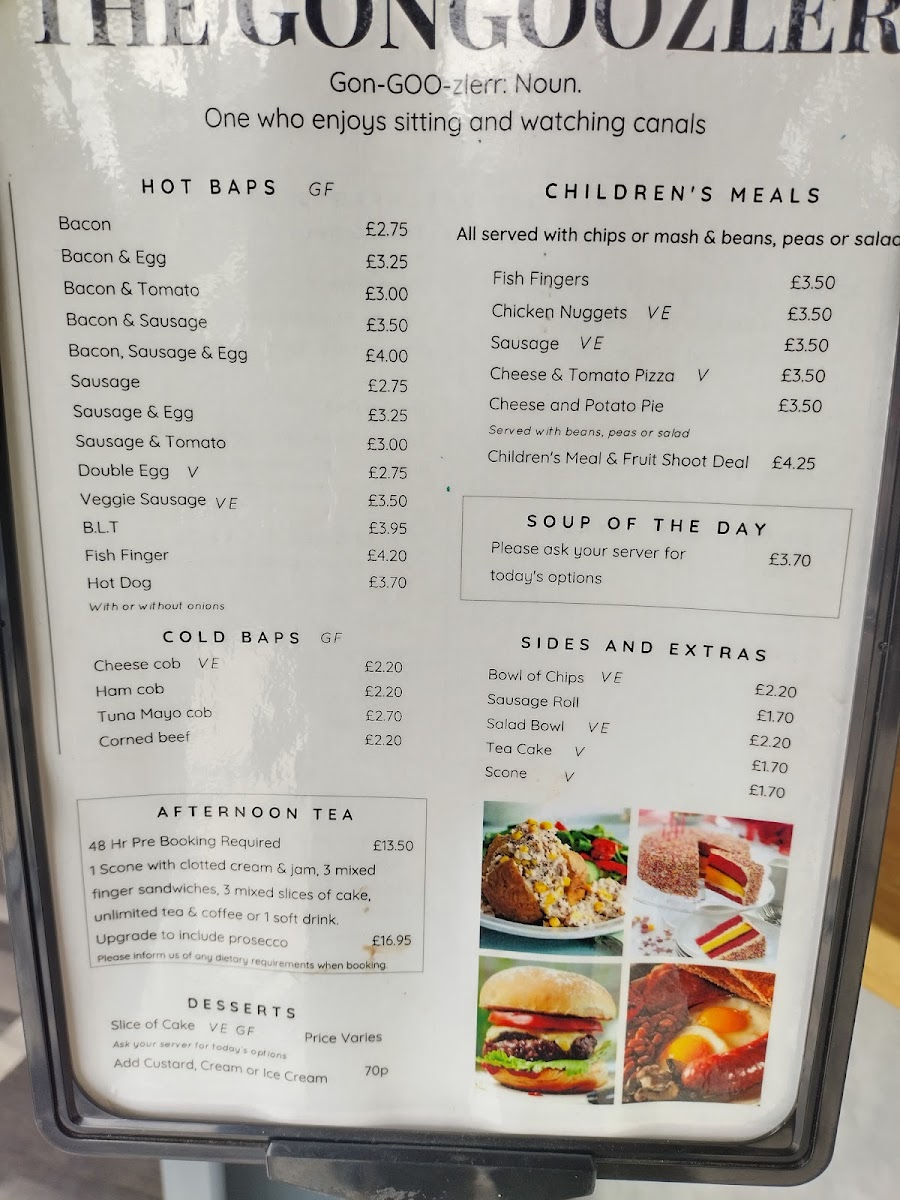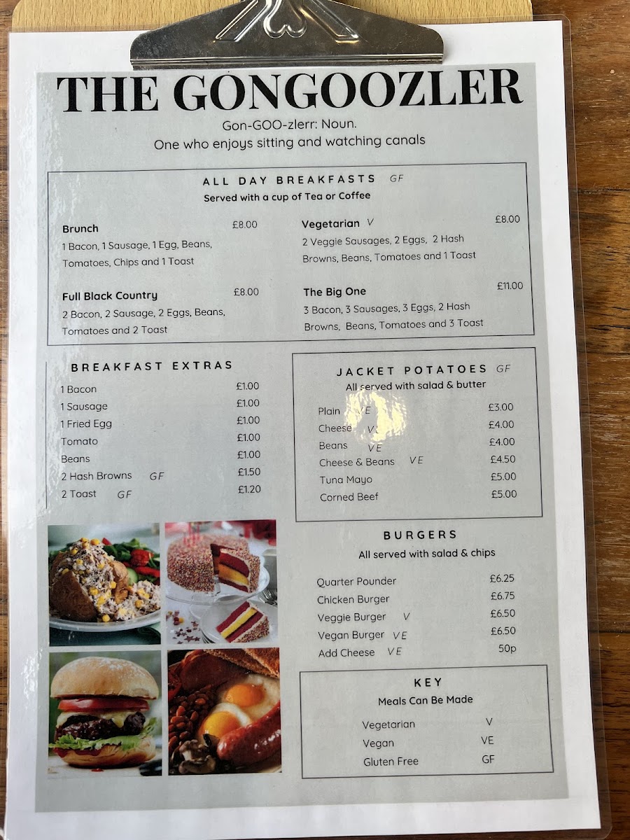 The menu at Gongoozler reflects a straightforward, café-style approach with a focus on casual bites and comforting drinks. Whether you're stopping by after a stroll along the canal or settling in for a relaxed meal, the offerings are well suited to a calm, unhurried atmosphere.